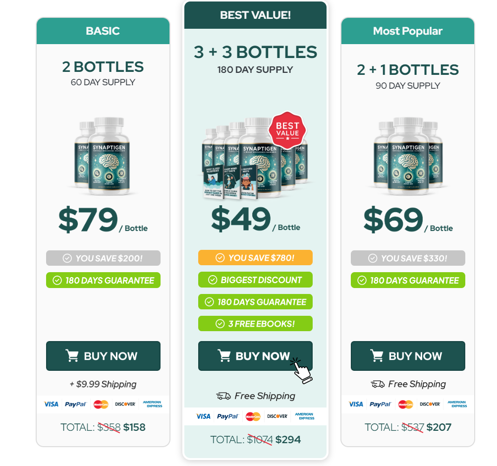 To ensure customer satisfaction, Synaptigen provides a convenient purchasing experience through its official website. The product is also backed by a 180-day money-back guarantee, allowing you to request a refund if you’re not fully satisfied with the results.